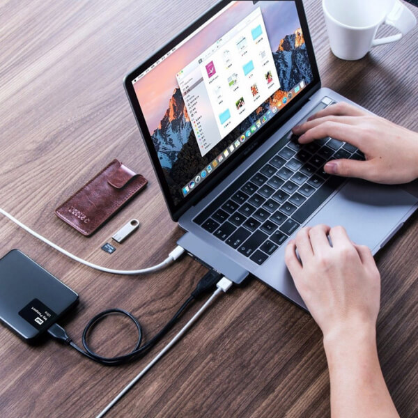 Speciálně navržená redukce pro Nový Apple MacBook Pro 13" a 15" s TouchBarem z hliníkové slitiny ve vesmírně šedé barvě perfektně doplní Vás nový Macbook Pro. Nový MacBook Pro má pouze USB C výstupy a tento problém řeší tato nová redukce. Redukce podporuje i připojení napájení a připojení externích disků do 2TB.