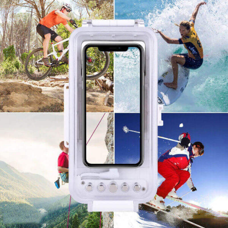 - Balení obsahuje: 1x Profesionální vodotěsné ochranné pouzdro do maximální hloubky ponoru až 45 metrů, 1x speciální poutko na ruku