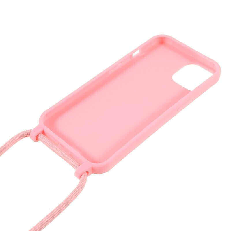 Gumový ochranný kryt se šňůrkou na krk pro Apple iPhone 16 - světle růžový | Student-eShop