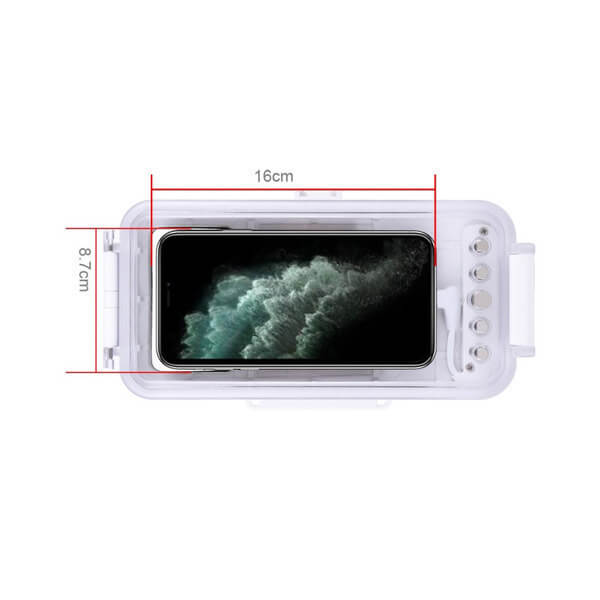 - Pouzdro je vyrobeno tak, aby Váš telefon na těsno uzavřel a chránil tak před vodou, vlhkostí, ale také prachem, pískem a dalšími nečistotami