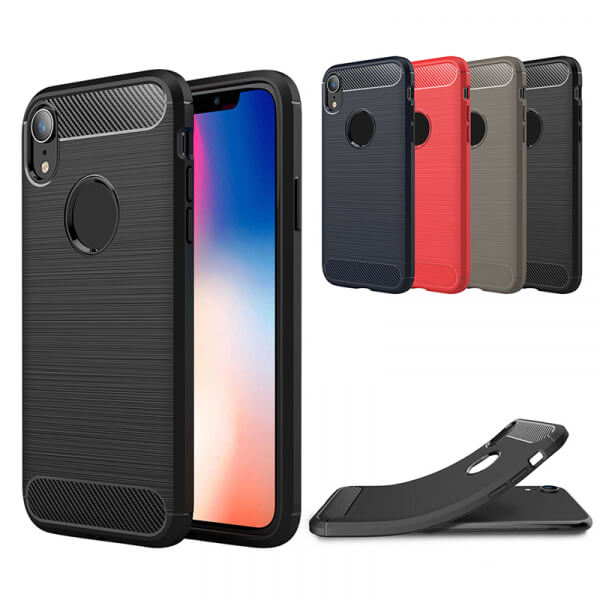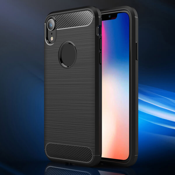 Ochranný silikonový obal karbon pro Apple iPhone XR - černý