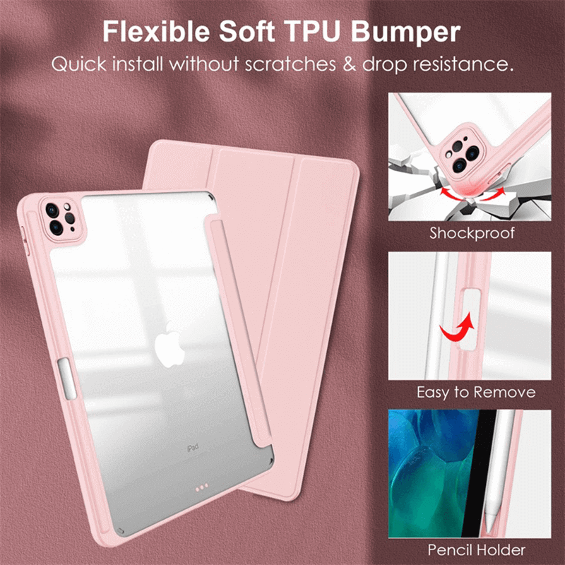 2v1 Smart flip cover + zadní silikonový ochranný obal s držákem na pero pro Honor Pad X9 - světle růžový