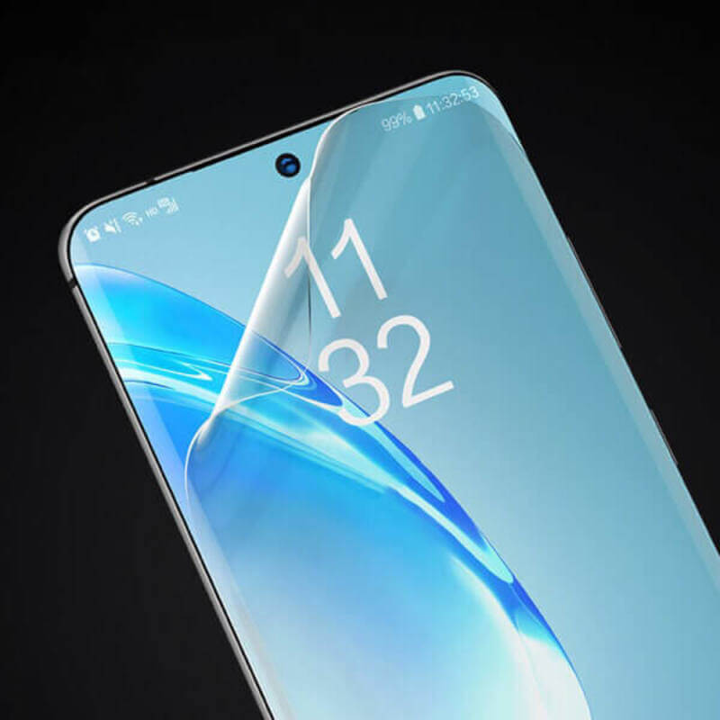 Díky pružnosti a tloušťce cca 0,2mm je fólie zahnutá i přes zakřivené okraje displeje.