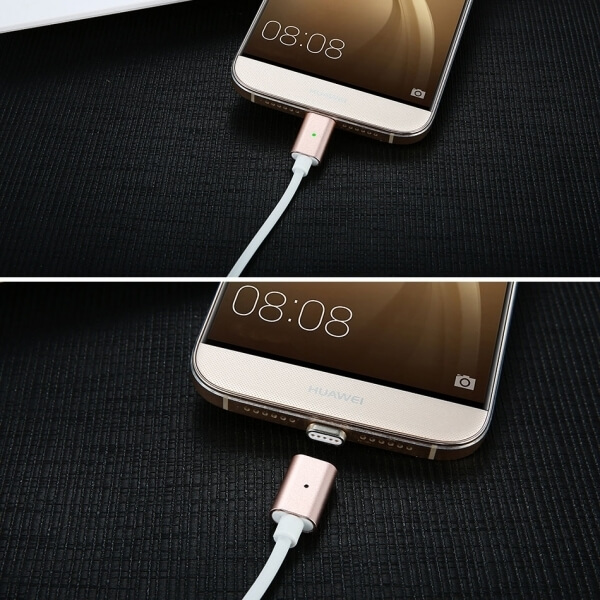 - Magnetický konektor Micro USB, který se rychle a snadno přichytí k USB kabelu a ihned nabíjíte