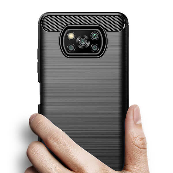 Ochranný silikonový obal karbon pro Xiaomi Poco X3 Pro - černý